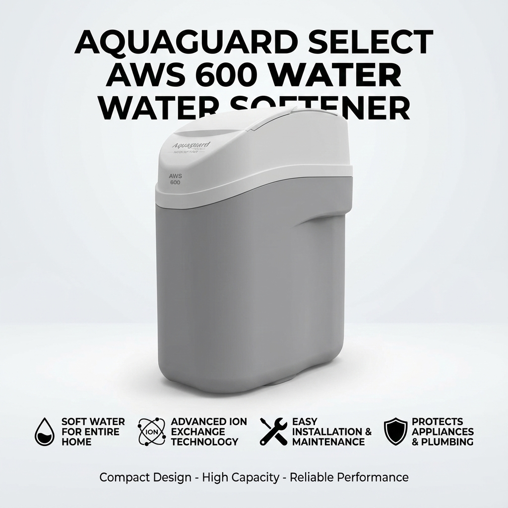 The Aquaguard Select AWS 600 is a reliable water softener designed to tackle hard water problems at the source. Built for homes and small commercial spaces, this system reduces excess hardness minerals like calcium and magnesium that cause scale buildup, dry skin, dull hair, and damage to plumbing and appliances.