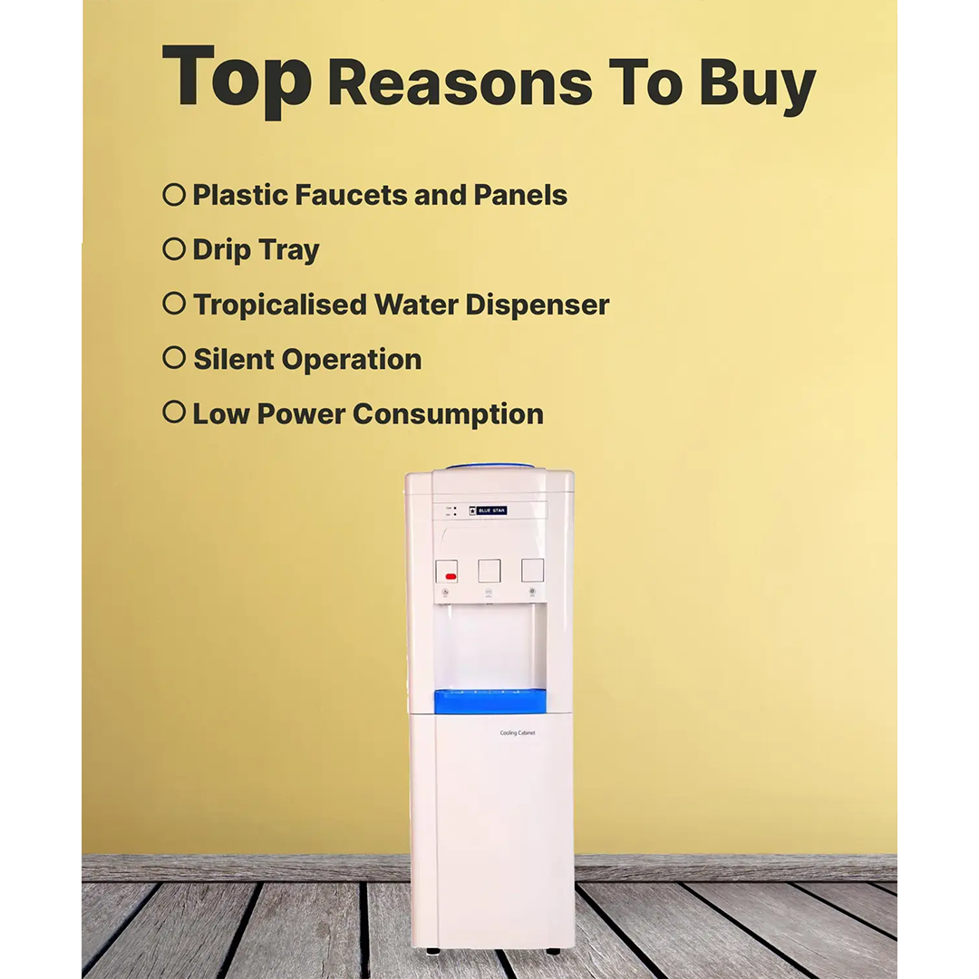 The Blue Star BWD3FMRGA Water Dispenser is a reliable and space-efficient drinking water solution designed for offices, commercial spaces, and shared environments. Equipped with a built-in cooling cabinet, this model adds extra convenience by allowing users to store beverages or small items at a cool temperature.