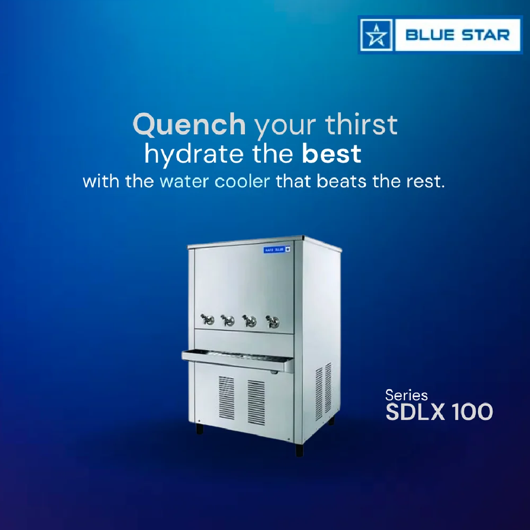 The Blue Star Stainless Steel Water Cooler SDLX 100 is a high-capacity commercial water cooling solution designed for locations with very high drinking water requirements. Featuring a large 380-liter storage capacity and a robust stainless steel body, this water cooler is built for durability, hygiene, and continuous operation.