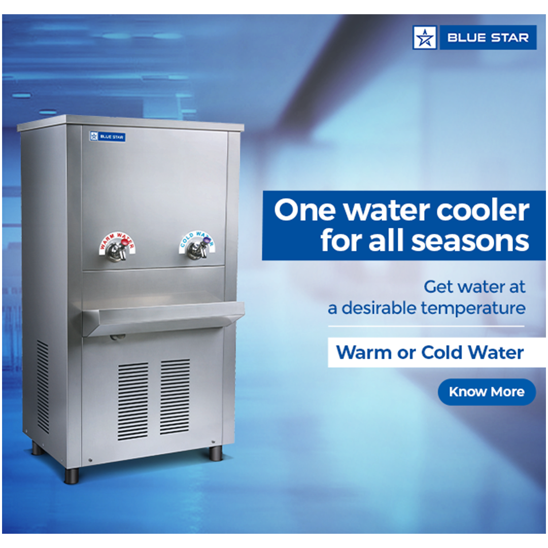 The Blue Star SDLX150150 Water Cooler is a heavy-duty commercial water cooling solution designed for places with high daily drinking water demand. Built with a durable steel body, this water cooler is ideal for continuous usage in commercial and institutional environments where reliability and hygiene are essential.
